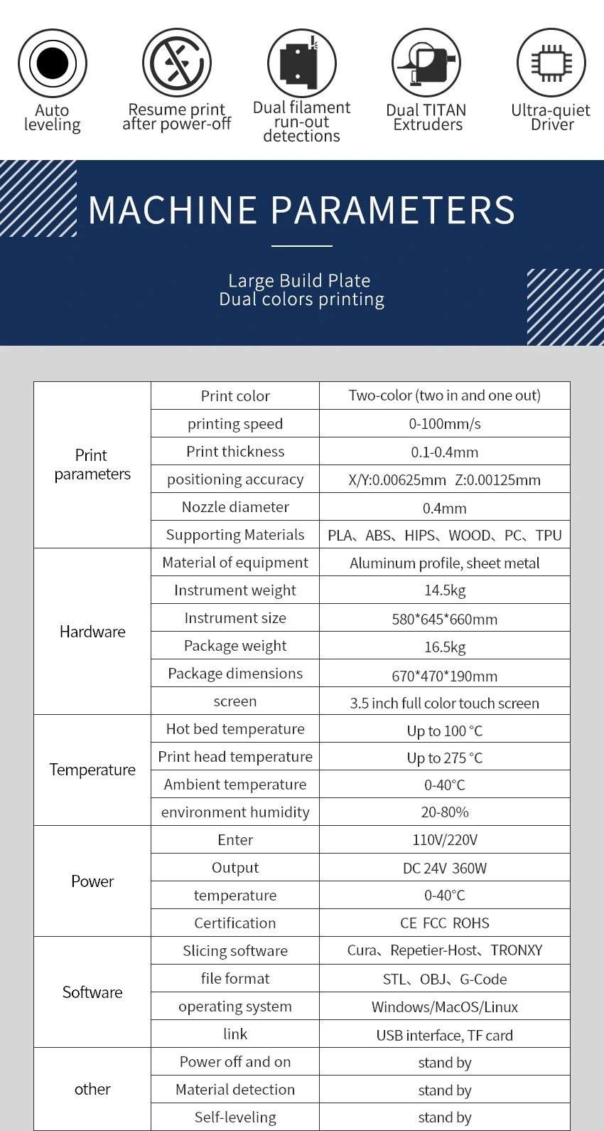 ![[EU/US Direct]TRONXY® X5SA-2E Dual Colors 3D Printer Kit CoreXY with Dual Titan Extruder Dual Z axis 330*330*400mm Printing Size TMC2225 Ultra Quiet](image/catalog/1110/D_14.webp)