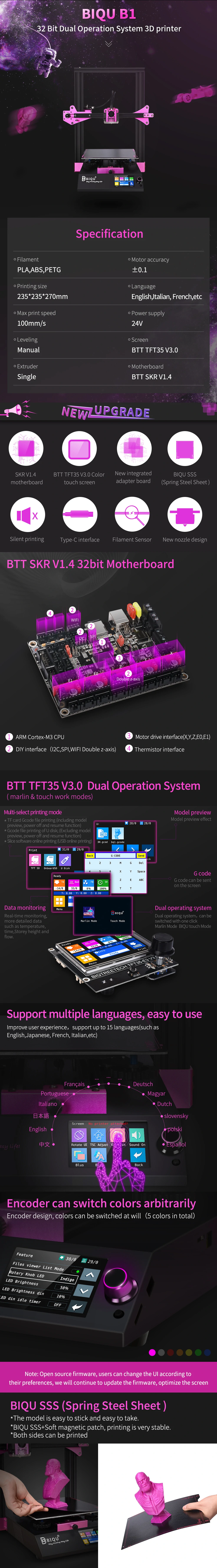 BIQU B1 Dual Operation System  New Upgraded 3D Printer 235*235*270mm Print Size with SKR V1.4 Mainboard/BTT TFT35 V3.0 Screen/Filament Sensor/Night Vision RGB Light Powered by BIGTREETECH
