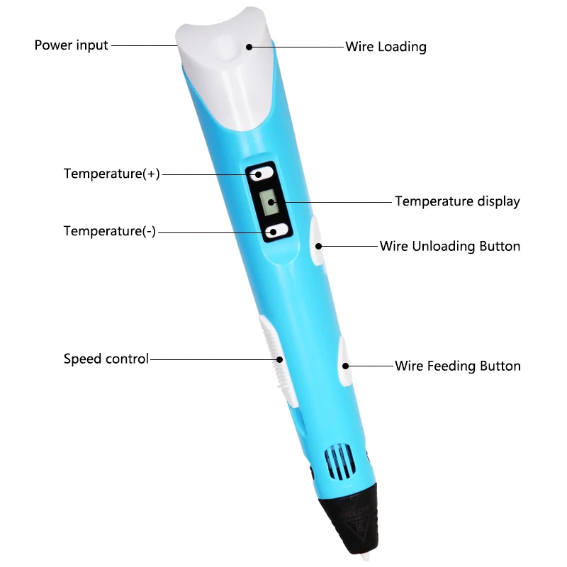 Upgrade version 2nd generation 3D printing pen with Temperature Control LCD. Suit for beginners and kids. It comes with ABS filament in the package. But it is suit for PLA too.