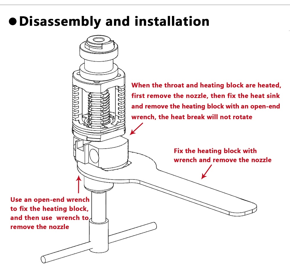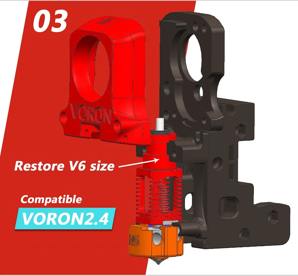 INTEGRAL FRAME RIGID STRUCTURE: 1.Protect the heat break from external force. 2.One-hand nozzle replacement more simplest without grasping the hotend. 3.Hollow-carved design,increase air circulation without obstacle.