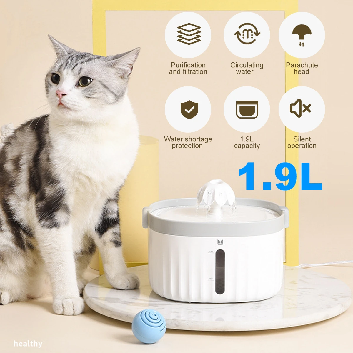 - Large Capacity: With 1.9L large capacity, you does not need to replenish water frequently, don't need to worry about going out for a long time.