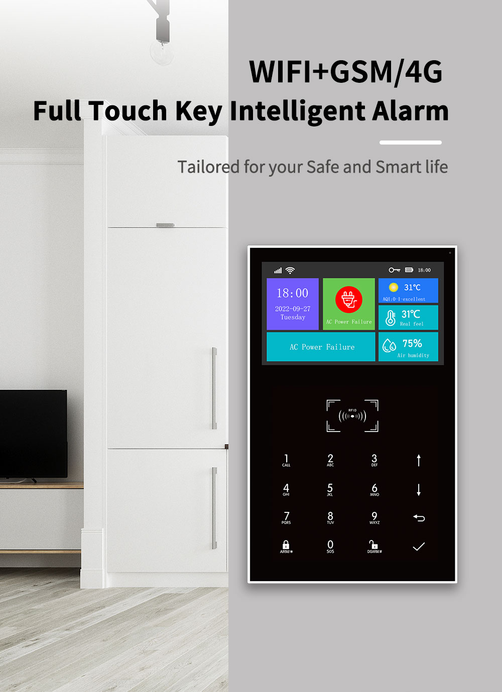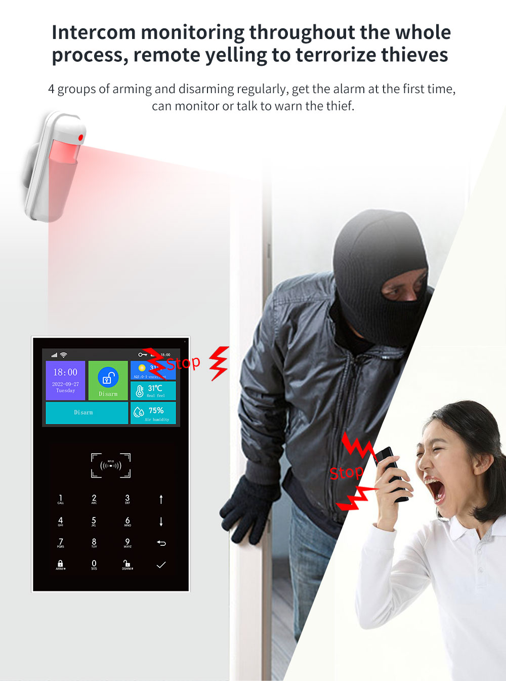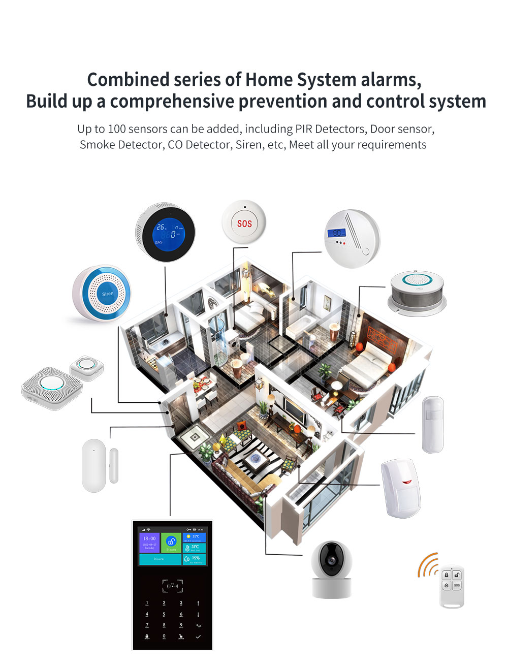 1. Versatile Wireless Connectivity: This system has 4G capacities, offering both Wifi and GSM services, for seamless remote control through the Tuya APP.2. Practical Design: A large touchpad screen makes operation and system navigation user-friendly.