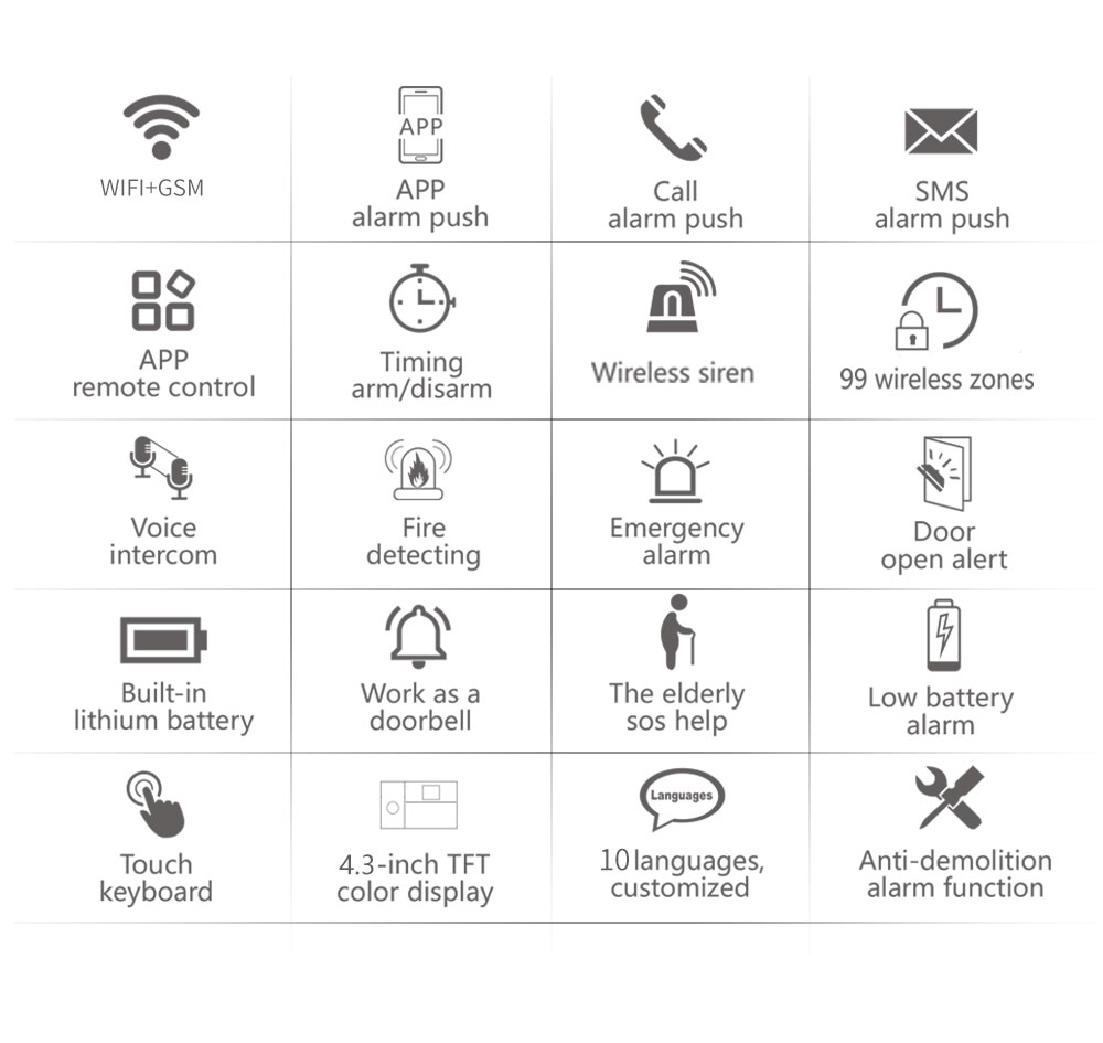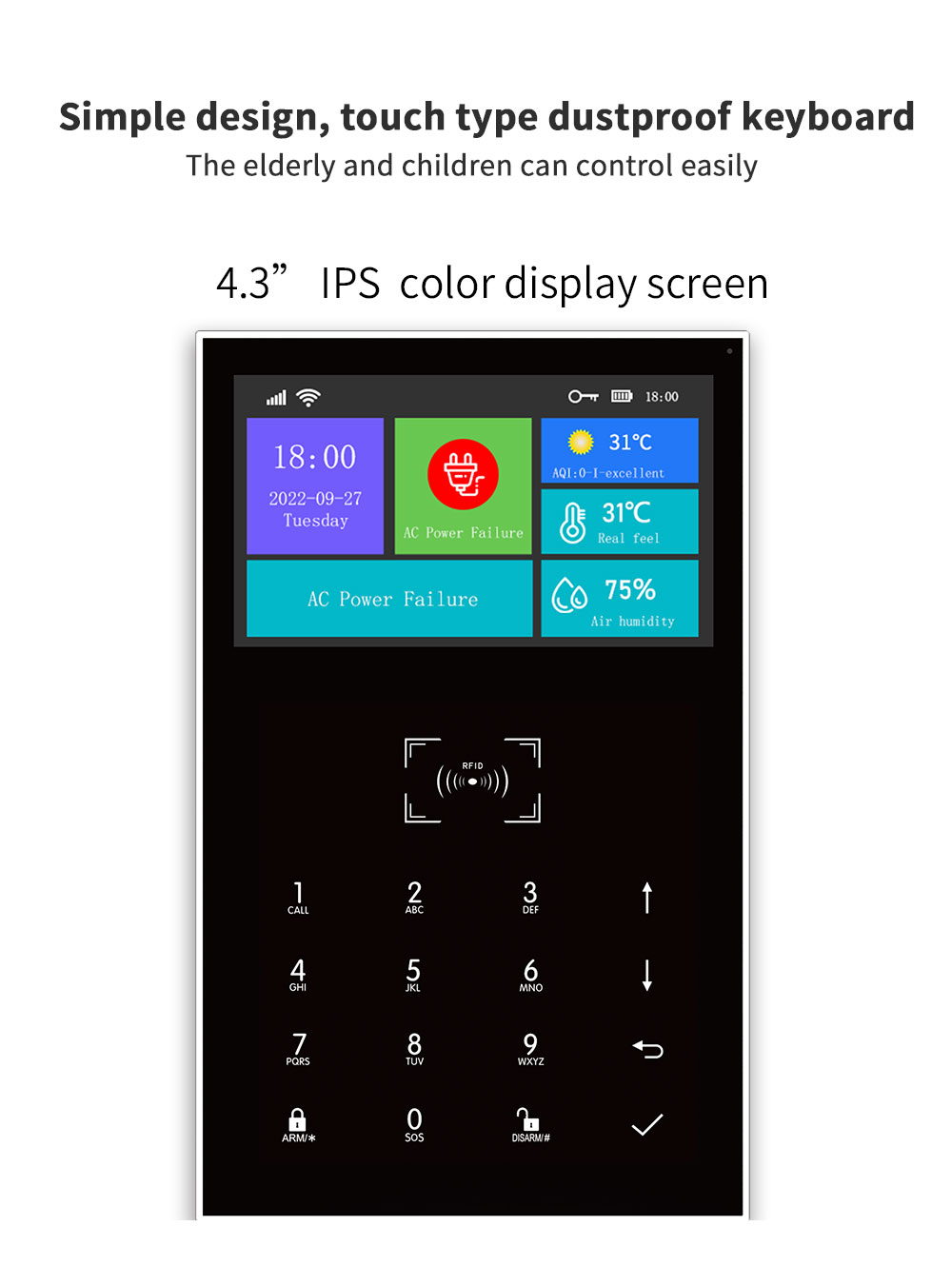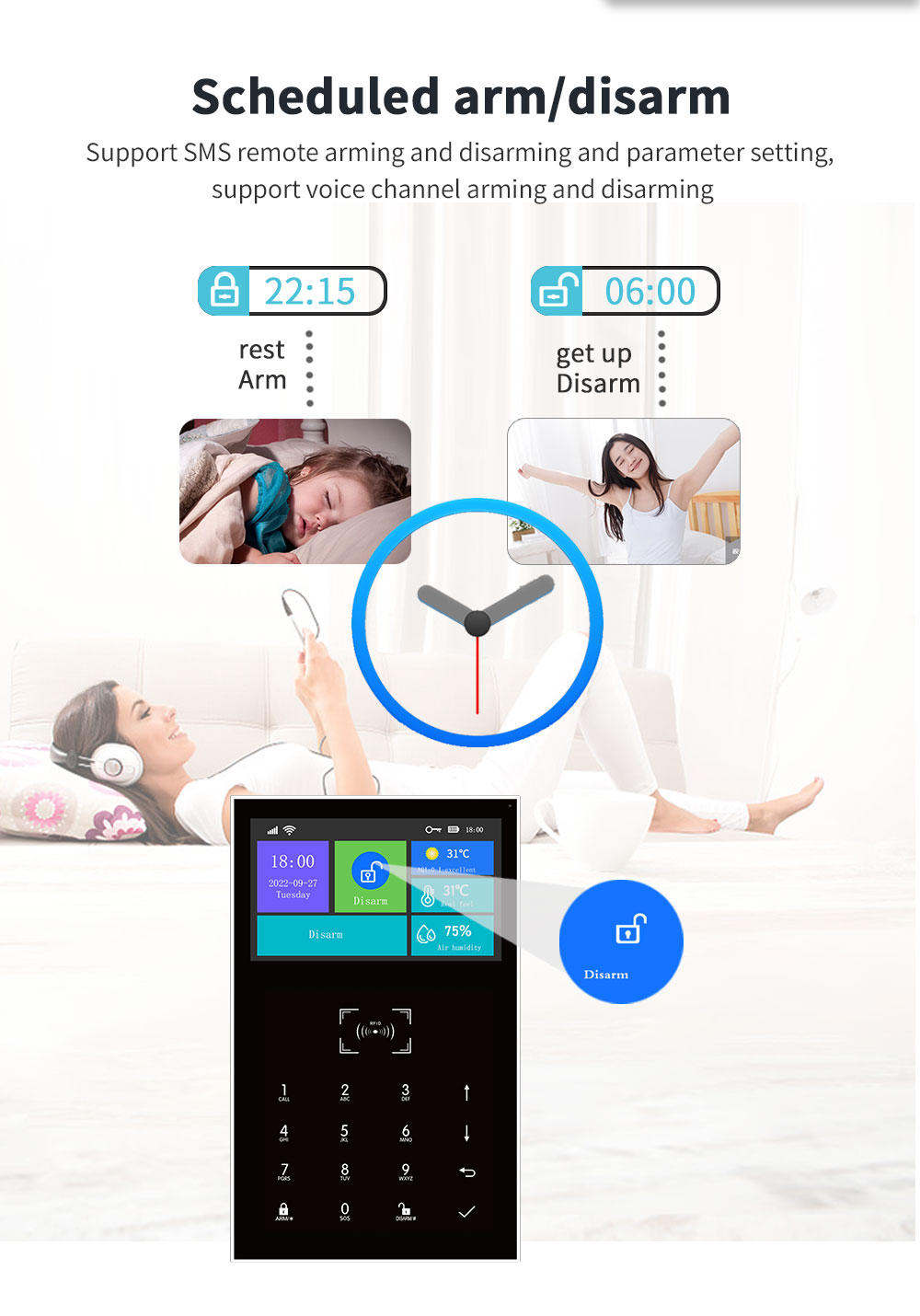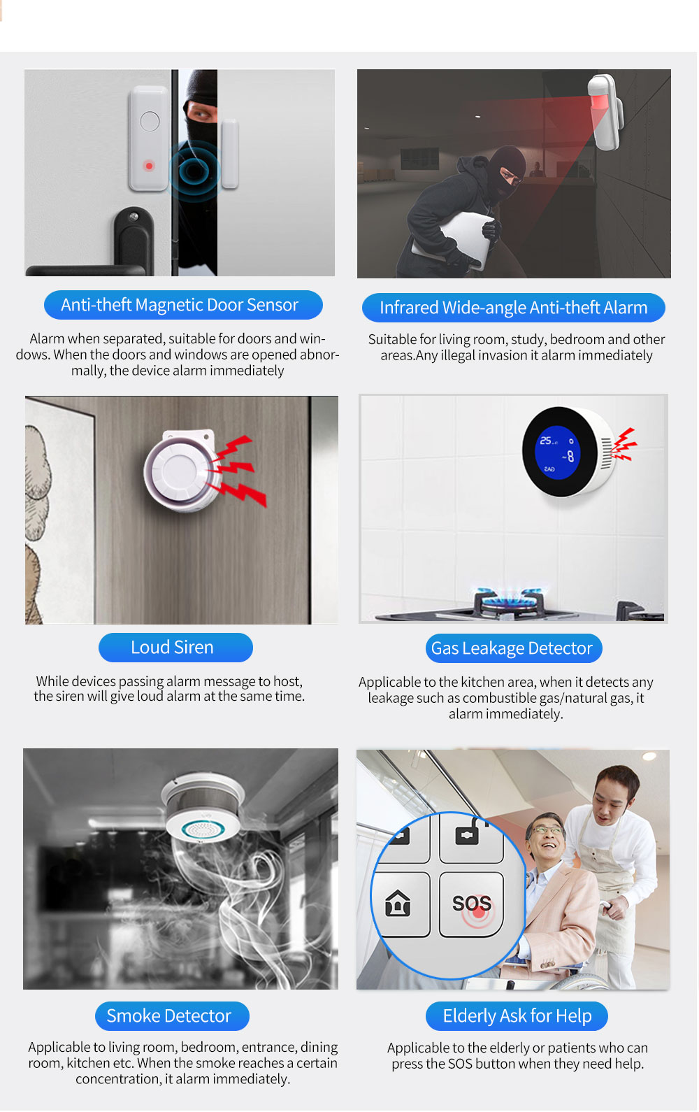 1. Versatile Wireless Connectivity: This system has 4G capacities, offering both Wifi and GSM services, for seamless remote control through the Tuya APP.2. Practical Design: A large touchpad screen makes operation and system navigation user-friendly.