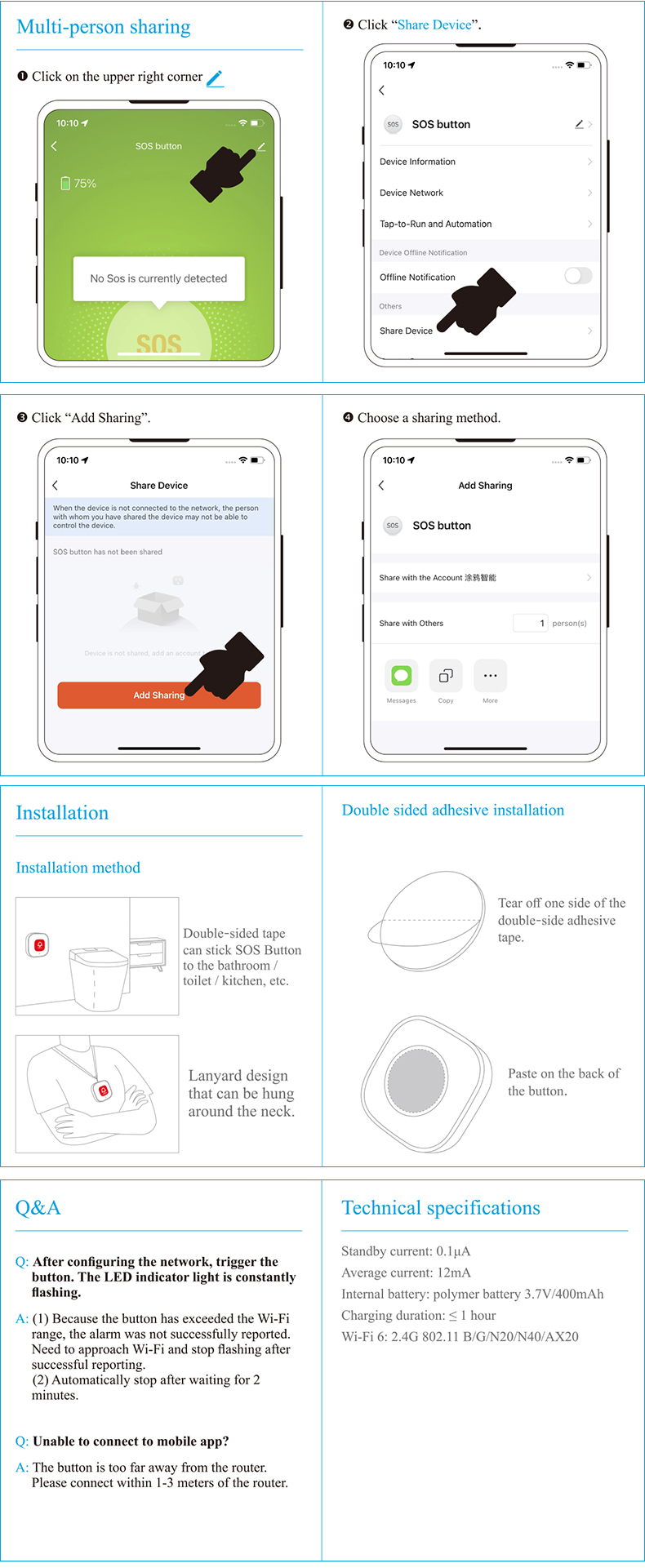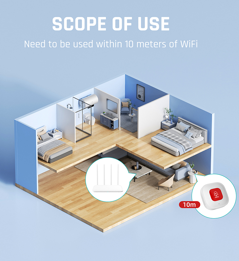 Emergency Assistance: The Tuya WiFi SOS emergency button is a compact personal safety alarm designed for the elderly, patients with disabilities, and seniors. In case of emergencies or when help is needed, users can easily press the button to trigger an immediate alert.