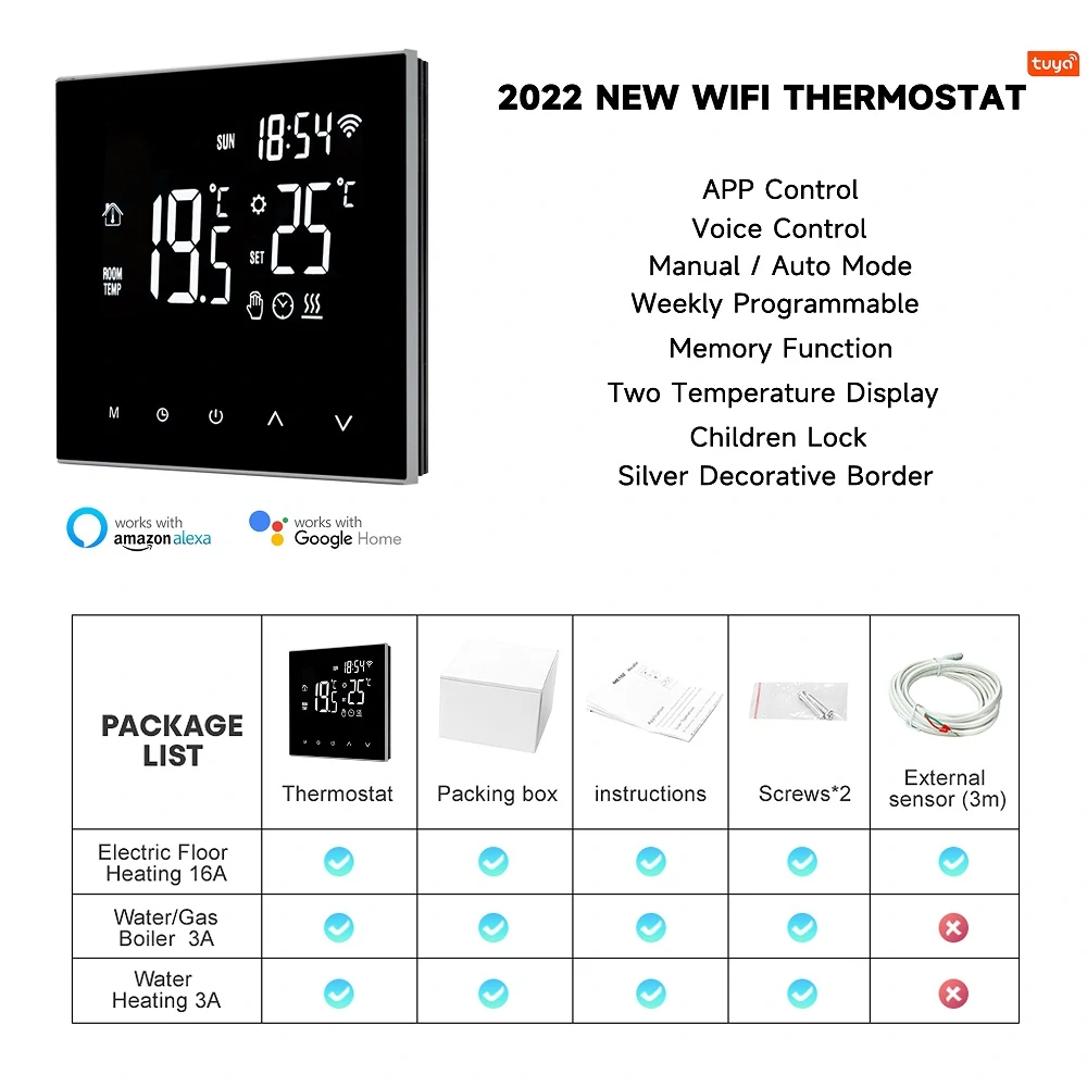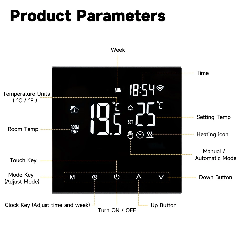 【APP Control】Smart thermostat that can be controlled by your phone before you come back home. (APP: Smart life)