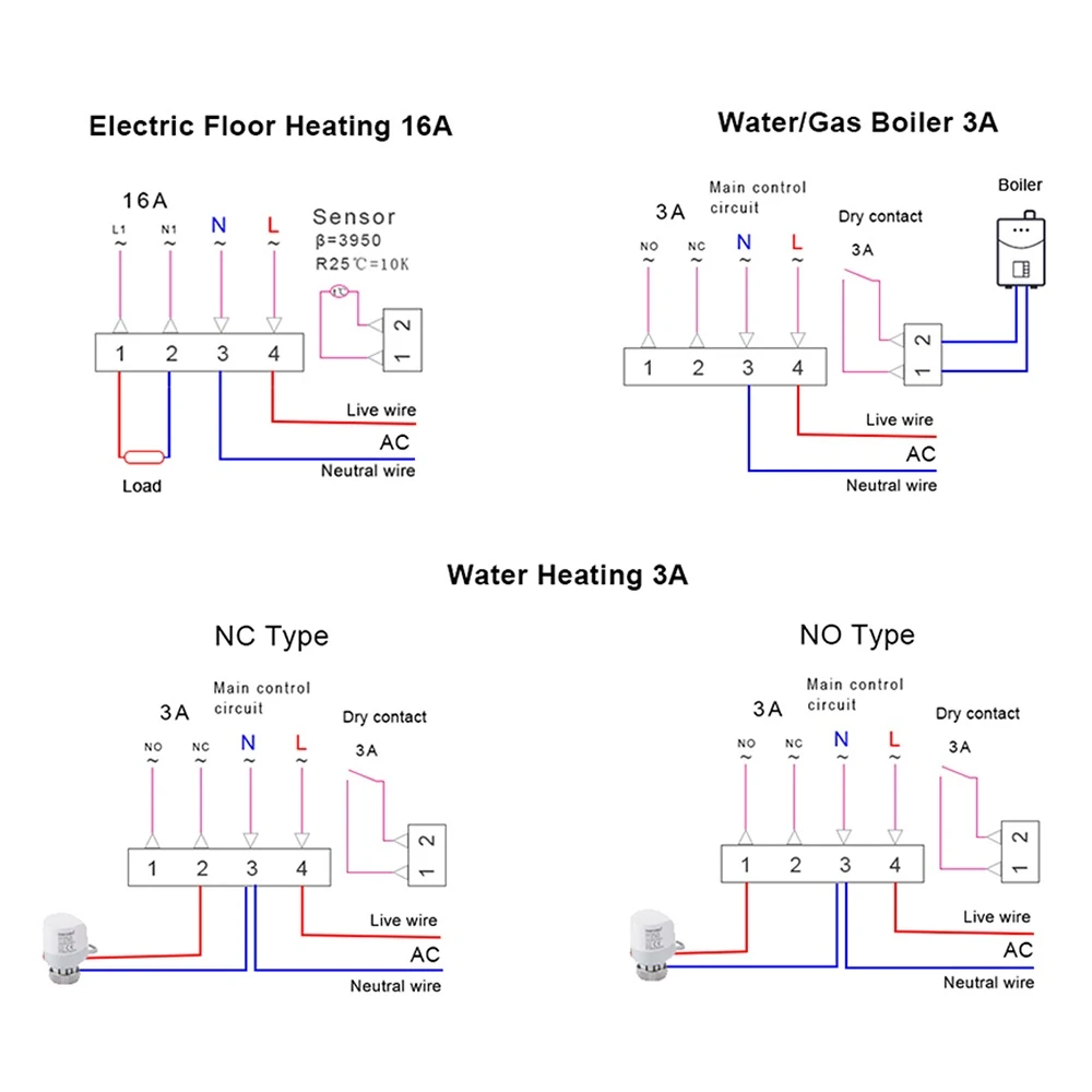 Function: Electric Heating(16A)/WaterGas Heating(3A)/Water Heating(3A)