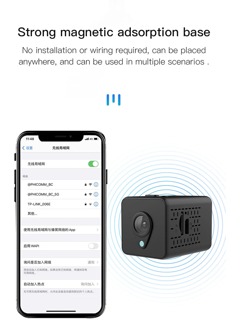 Strong magnetic adsorption base: No installation or wiring required, can be placed anywhere, and can be used in multiple scenarios.
