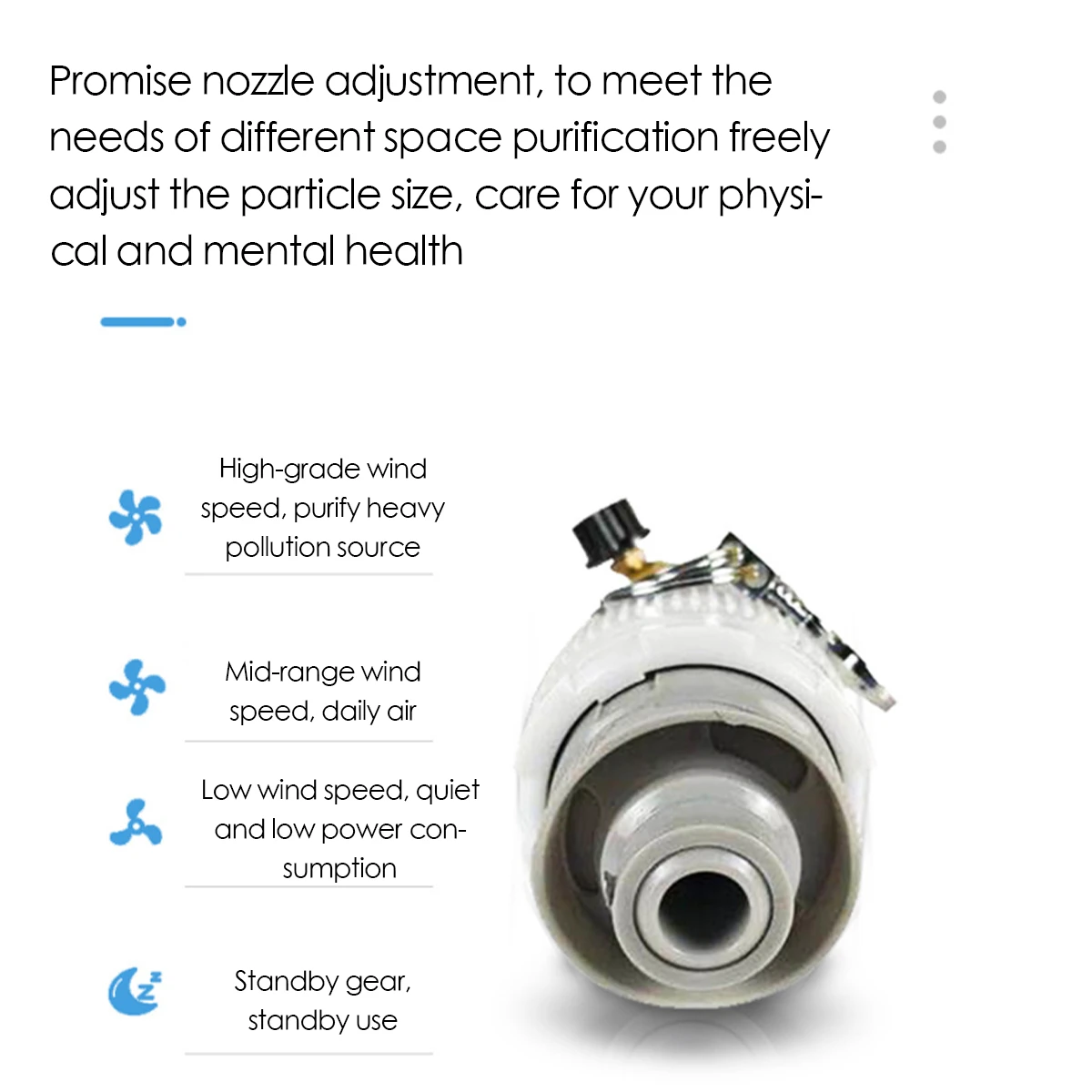 ● Promise nozzle adjustment, to meet the needs of different space purification freely adjust the particle size, care for your physical and mental health.