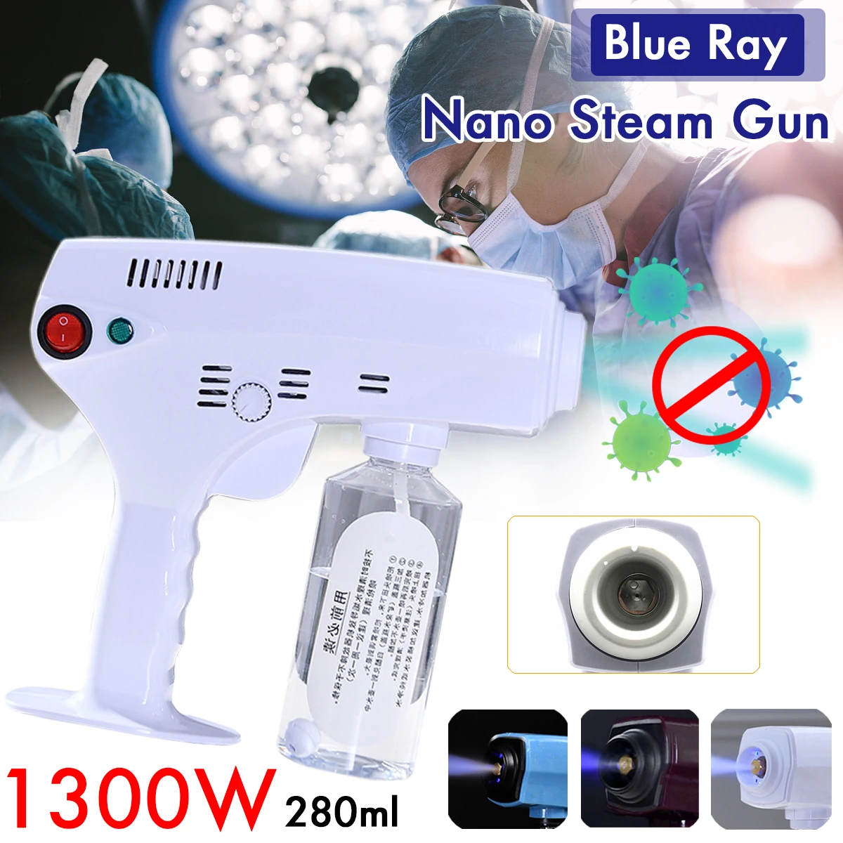 1300W 280ML Sprayer Machine Disinfection Blue Light Nano Steam Sprayer EU/US Plug 220V Atomizing Sprayer - White UK Plug A