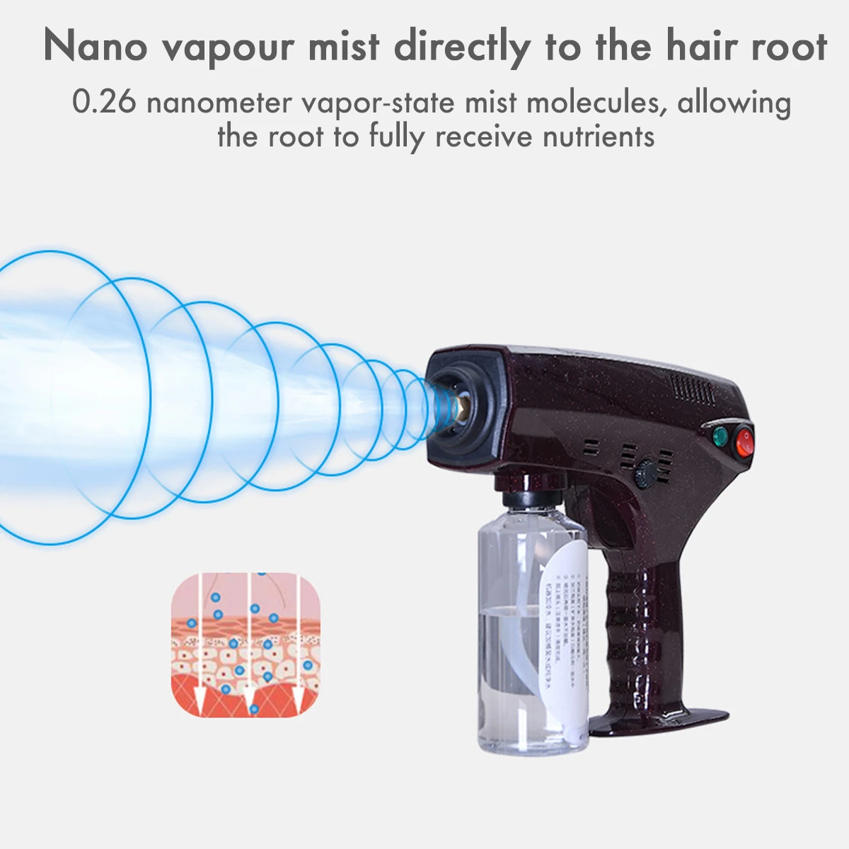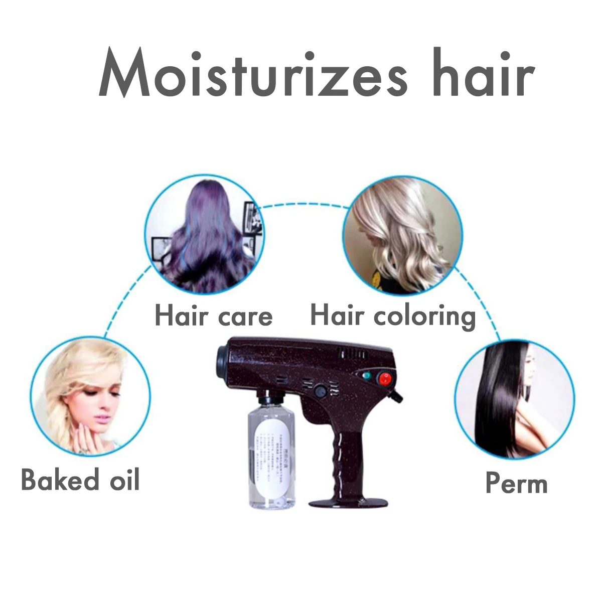 3.Nano-infiltration, hair deep nourishment, Pressurize the liquid water from saturated steam to 133 degrees.a superheated vaporr mist molecule 4.Having a diameter of about 0.26 nm, Smoothly penetrates the scales with a gapp of about 1 nanometer, Achieve the hot, dyed, and protective hair of the hair.