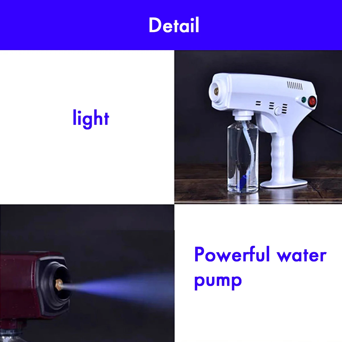 1.High-quality nano spray port, using PA high temperature resistant material, fast fogging, large amount of fog