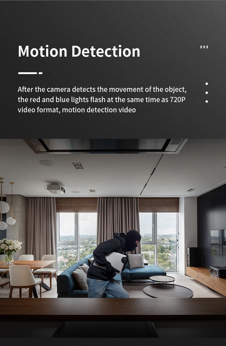 5. Motion detection alarm function to send information to the phone.