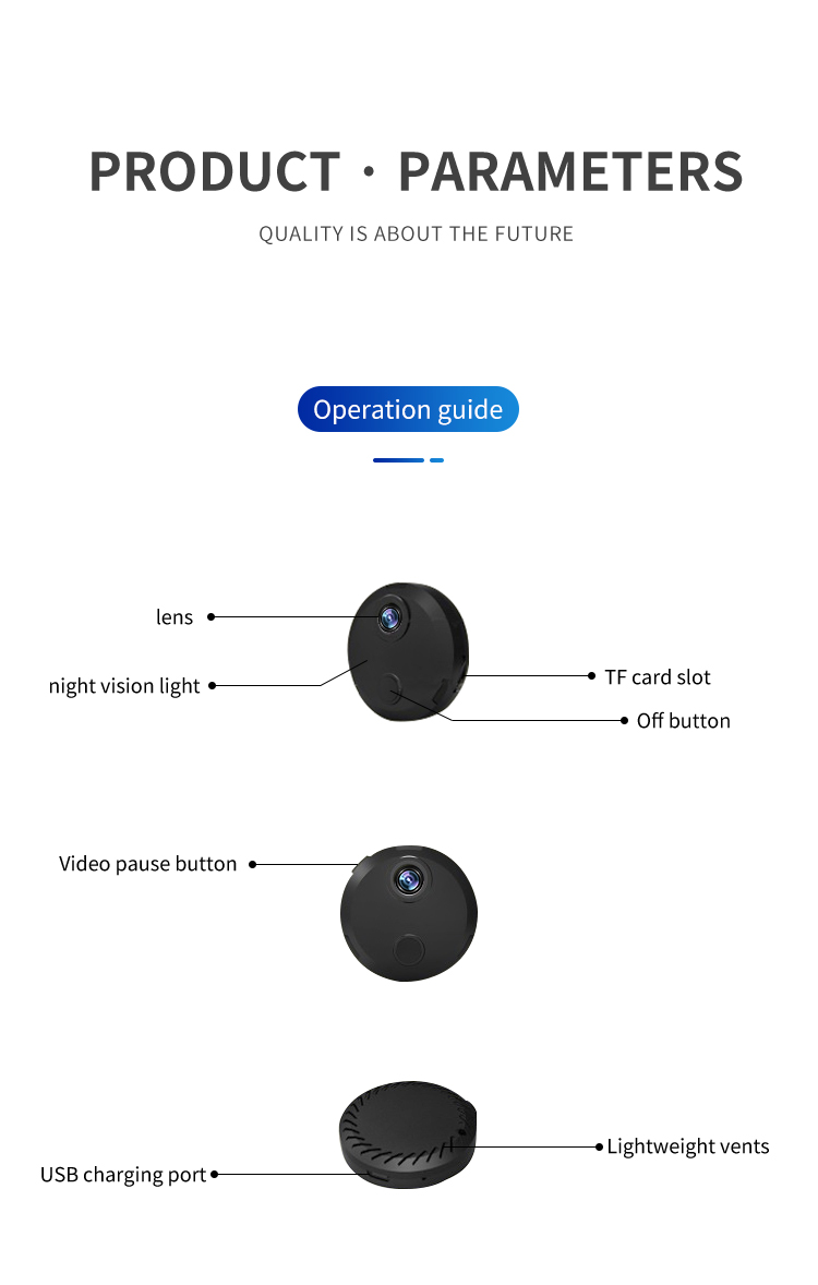 1. Special design Wearable Body Camera, clip on your bag, stick on any surface.