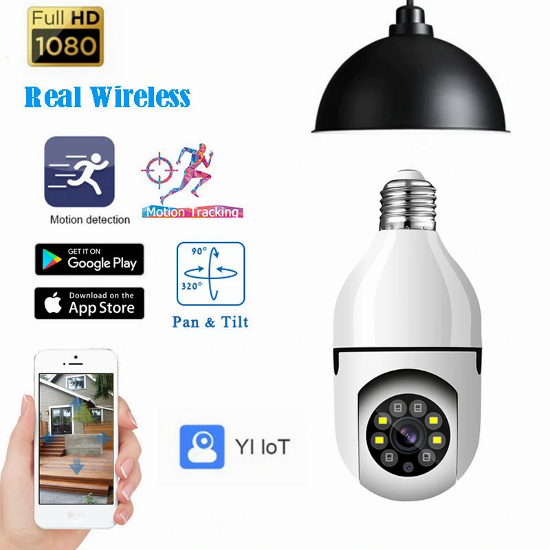 E27 Light Bulb Camera Full Color Night Vision Wireless Wifi Camera Smart Security Camera 1080P 360 Rotate Wifi IP PTZ For Outdoor Camera
