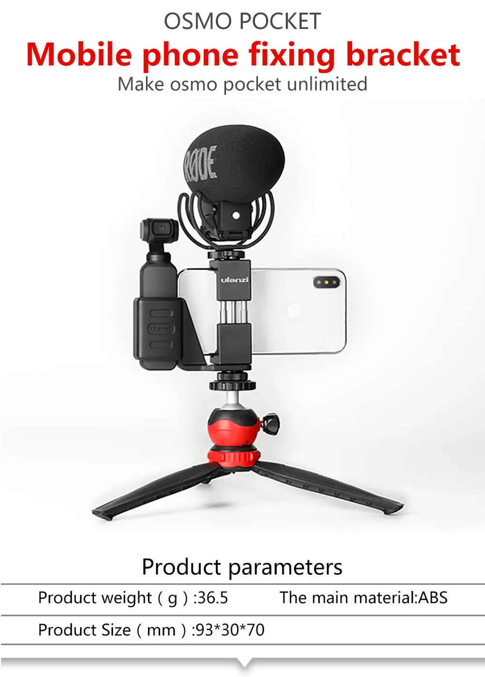 This set allows you to use DJI OSMO Pocket with your phone