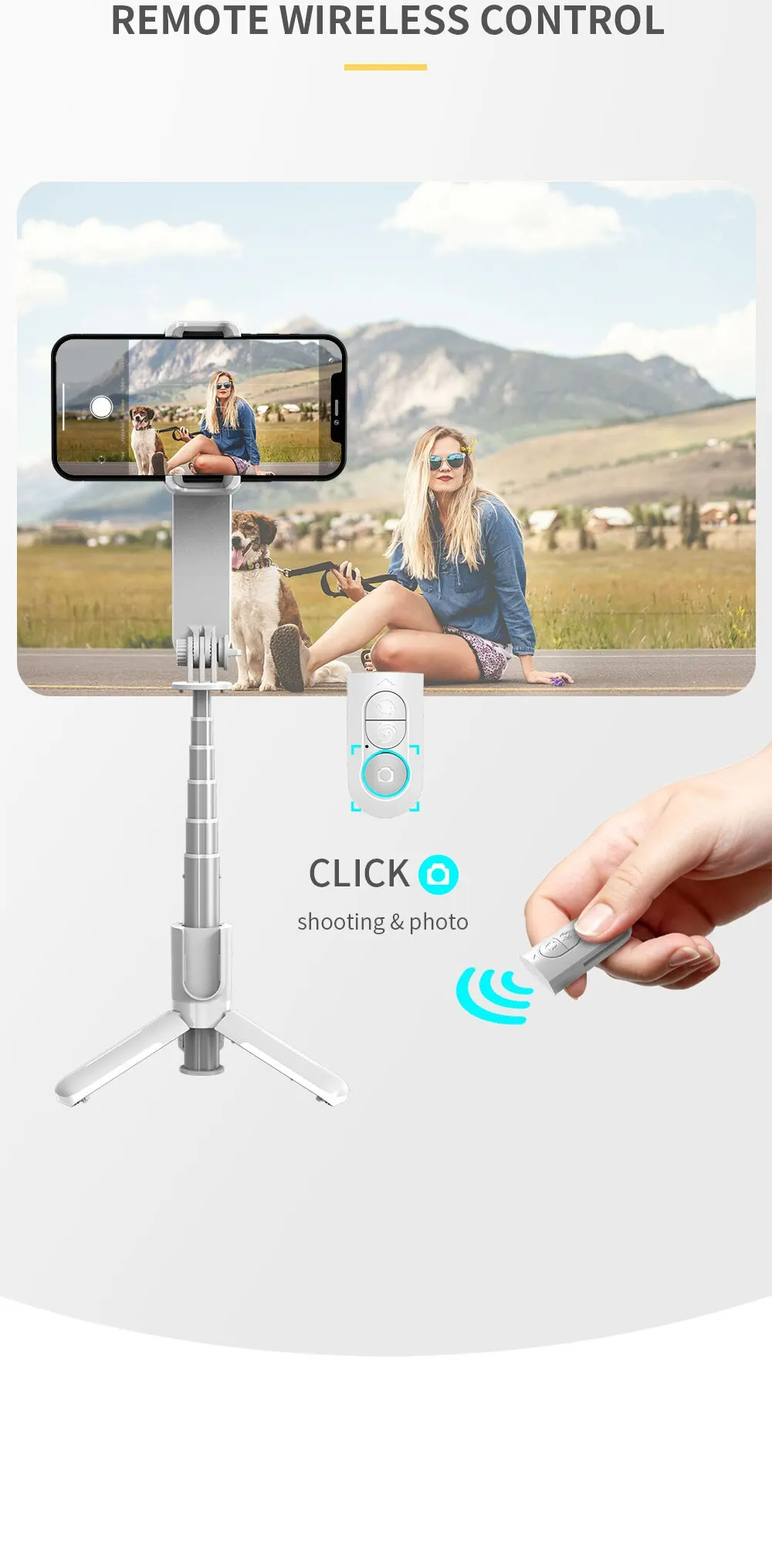 1. It is both a selfie stand and a stabilizer, providing anti shaking during movement.