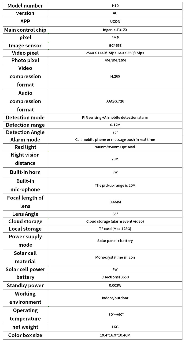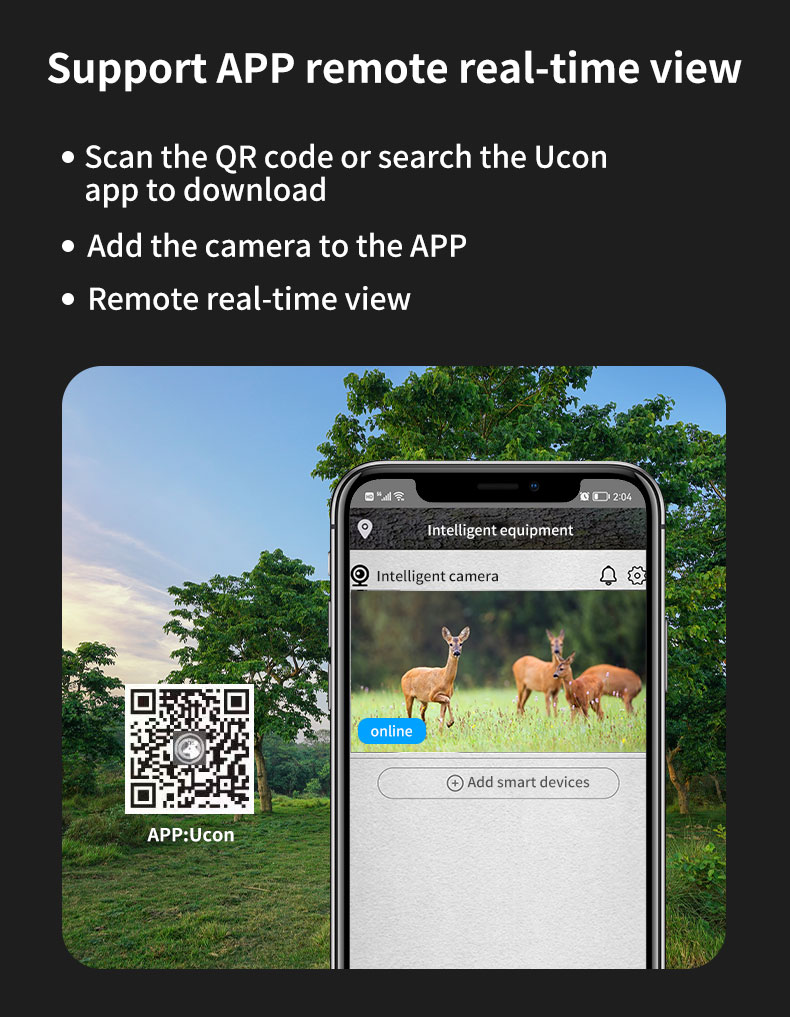 1. PIR sensing and AI mobile detection alarm provide advanced security.2. 4G network compatibility for real-time viewing through the UCON app.