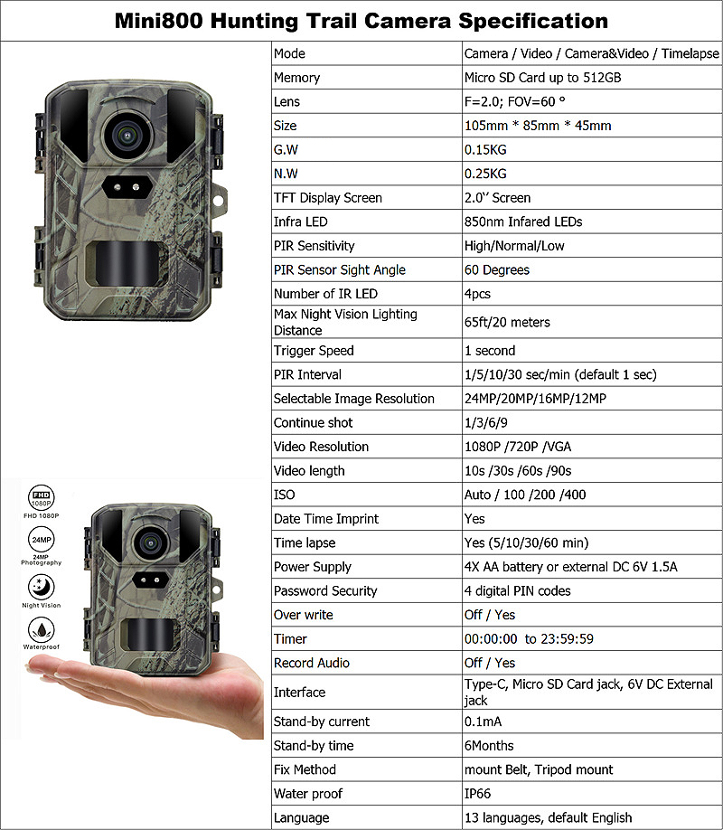 5. Long Stand-by Time: Thanks to low stand-by current, the camera can last up to 6 months on standby, conserving power.