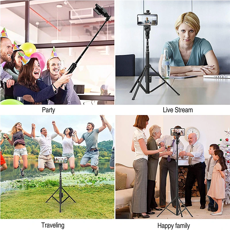The strong aluminum telescopic pole and non-slip foot pad make the tripod more stable. Meet your all party & photography & video &Youtube& live streaming needs.