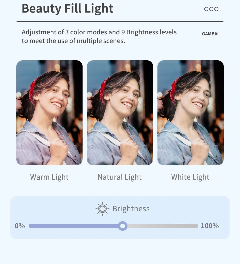 5. Complementary Light: Comes with a 400mAh supplementary light with a color temperature of 3000k-6500k, ensuring optimal lighting for your photos or videos.