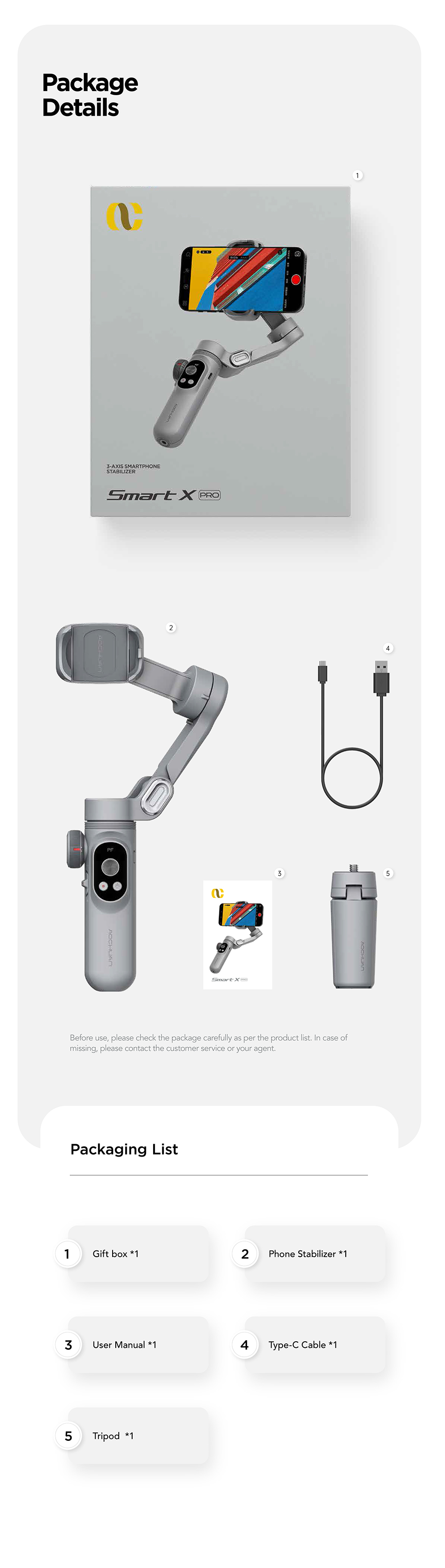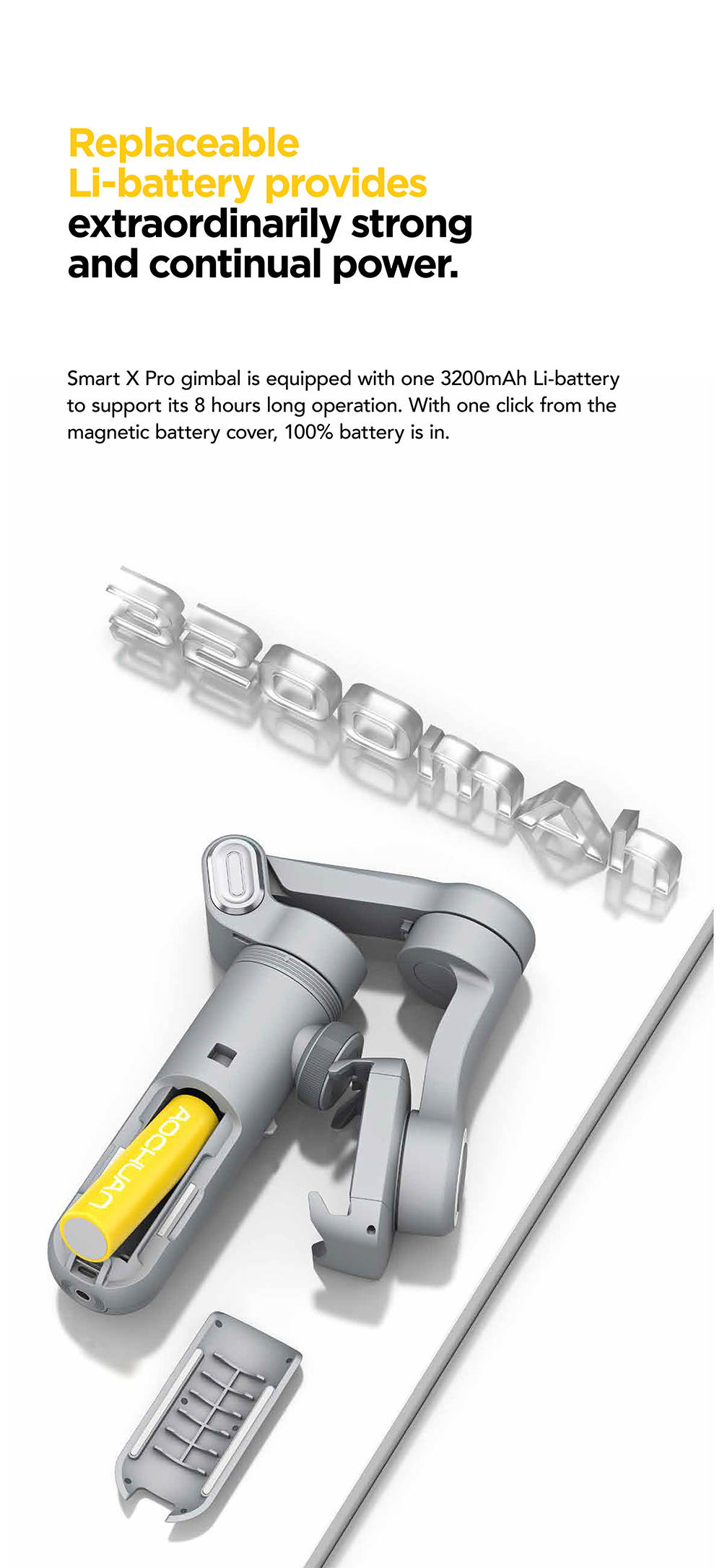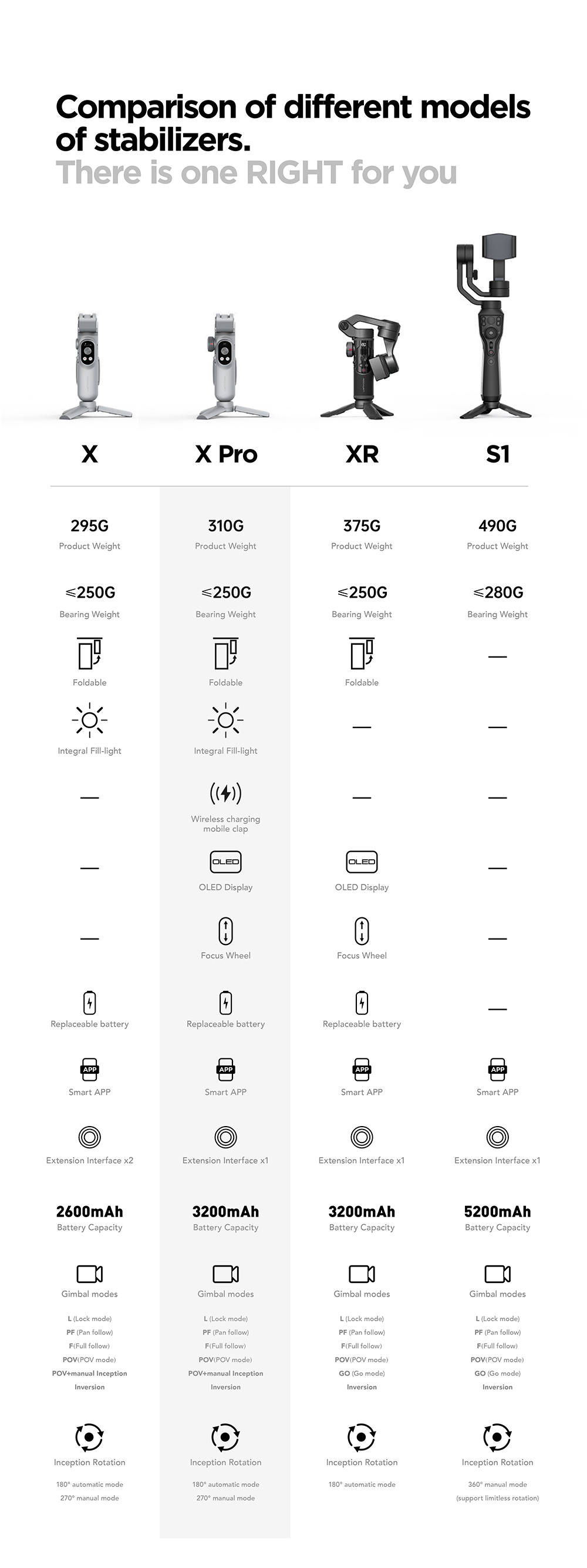 Accurate Control of Focus and Zoom Become So Simple and Professional: Carrying professional focus wheel and zooming rod, X Pro supports real-time and accurate focus and zoom adjustment. Easily shoot professional portrait and landscape videos. Replaceable Li-battery Provides Extraordinarily Strong and Continual Power: X Pro gimbal is equipped with one 3200mAh Li-battery to support its 8 hours long operation. With one click from the magnetic battery cover, 100% battery is in; Also it supports wireless charging for your mobile Phones. All-round Smart APP: No need register account or pay, the creative shots are available once Bluetooth is connected successfully. High compatibility with IOS, Android and (HarmonyOS) system accomplishes real enjoyabe shooting experience such as: gesture control camera, creative inception, dolly zoom (hitchcock), variety of make up filters, time lapse shot, professional mode, Smart Tracking. 310g Ultralight Design with HD OLED Display: The ultra light body can be easily held in one hand. Plus the collapsible design, X Pro occupies little space in your backpack or overcoat pocket. Light pack travel becomes possible for outdoor photography; Particular OLED panel can display the shot mode, battery life and Bluetooth status in real time, the gimbal status is visual anytime, facilitating beginners a lot. More Latent Functions: Manipulate the original camera that you can shoot via both original camera and APP; Standby mode automatically starts when the mobile is removed; More extension make you able to carry fill light, microphone and else podcasting kits.