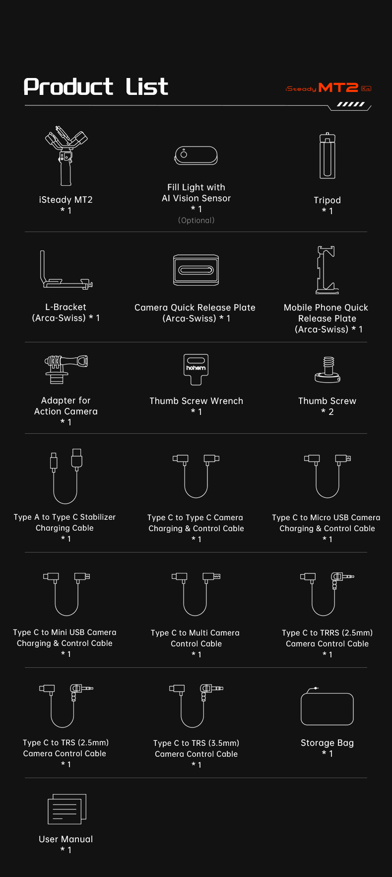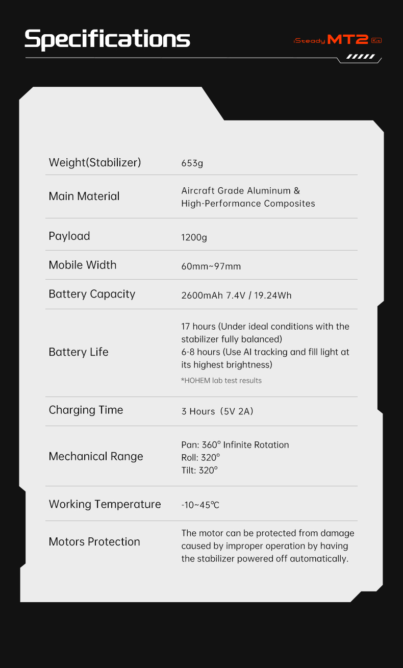 3. Versatile Compatibility: With a payload capacity of 1200g, the iSteady MT2 is compatible with a wide range of mirrorless cameras, allowing you to capture high-quality shots with ease.