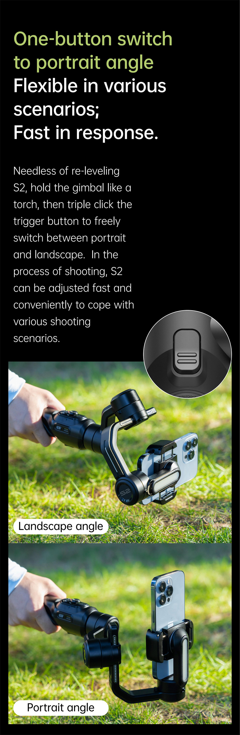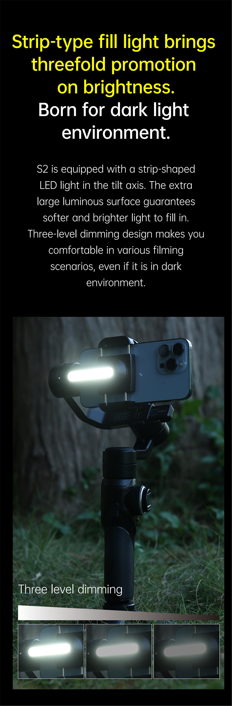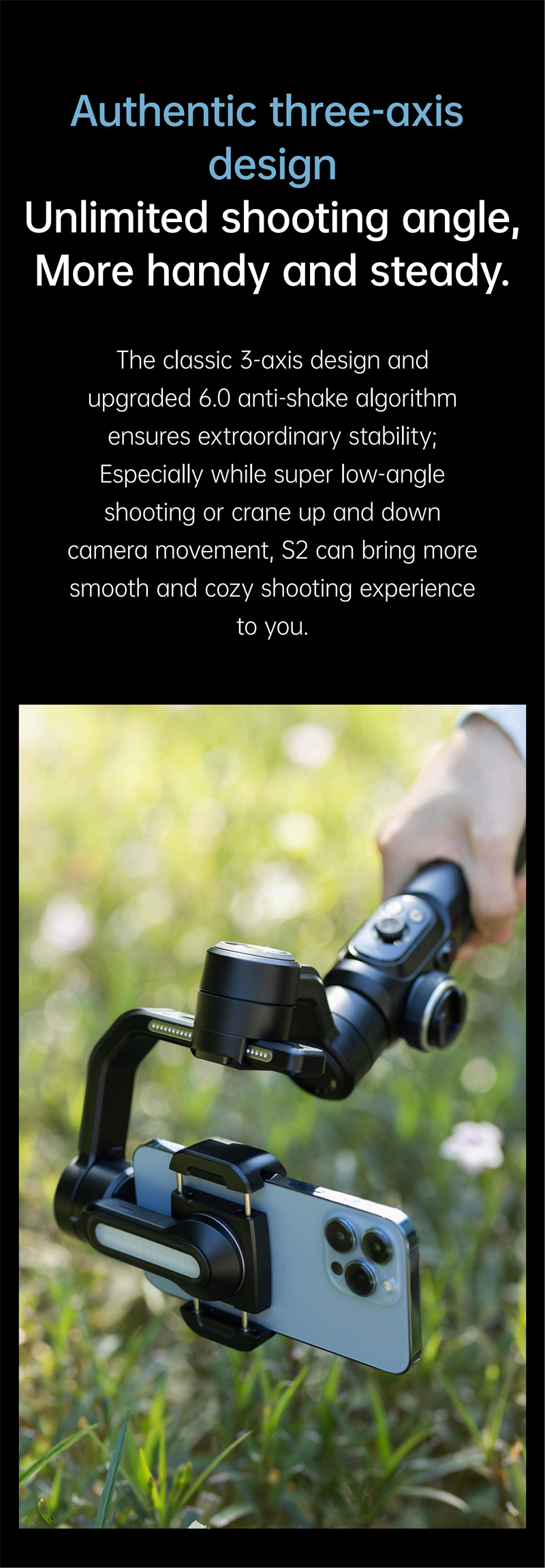 1. 3-Axis Stabilization: The AOCHUAN Smart S2 Smart Phone Gimbal ensures silky-smooth video recordings and steady photos by employing advanced 3-axis stabilization technology, reducing unwanted shakes and jitters.