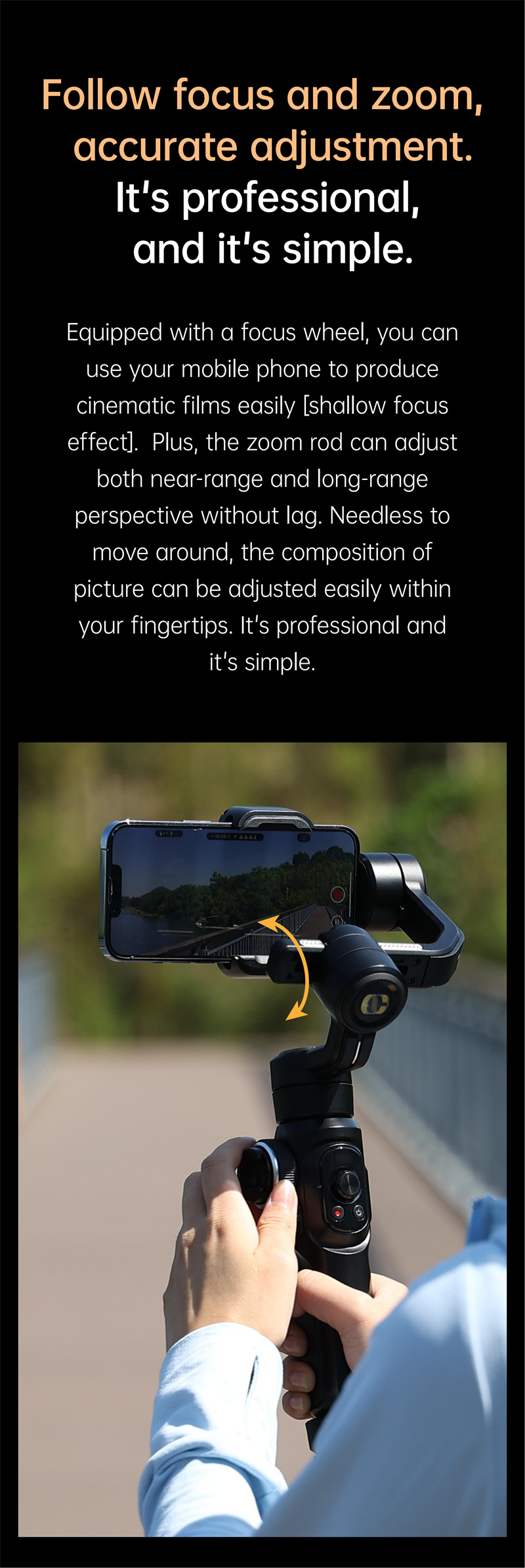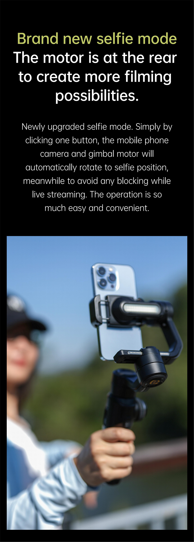2. Intelligent Tracking: Capture dynamic shots effortlessly with intelligent tracking capabilities. The gimbal can automatically follow subjects, keeping them centered in the frame as they move, ideal for vlogging and capturing on-the-go action.