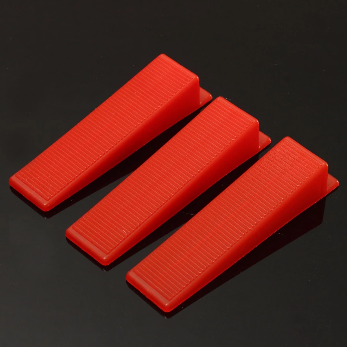 1.Insert clear clips under the brick 2.Clamp between the two boards, and then the Red Wedges stuck Clear Clips 3.Adjust the horizontal between tiles and tiles 4.With a rubber mallet out along the slit direction. 5.Or with your foot kicked out 6.Red wedge spacer after removed can also reusable.