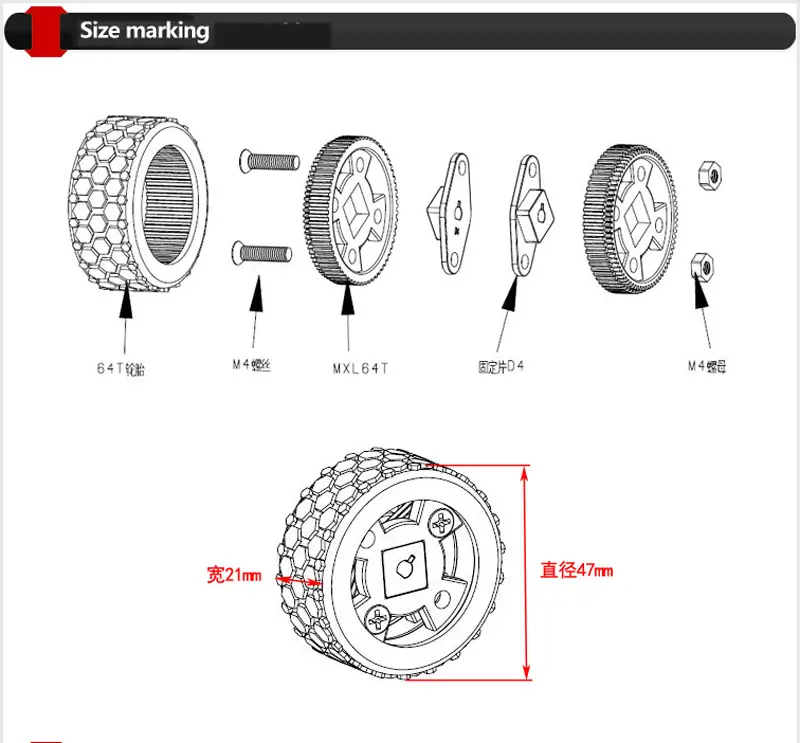 47*12mm/47*21mm 64T Transparent Tire Orange Rubber Wheel for Smart Robot Chassis Car - 21mm