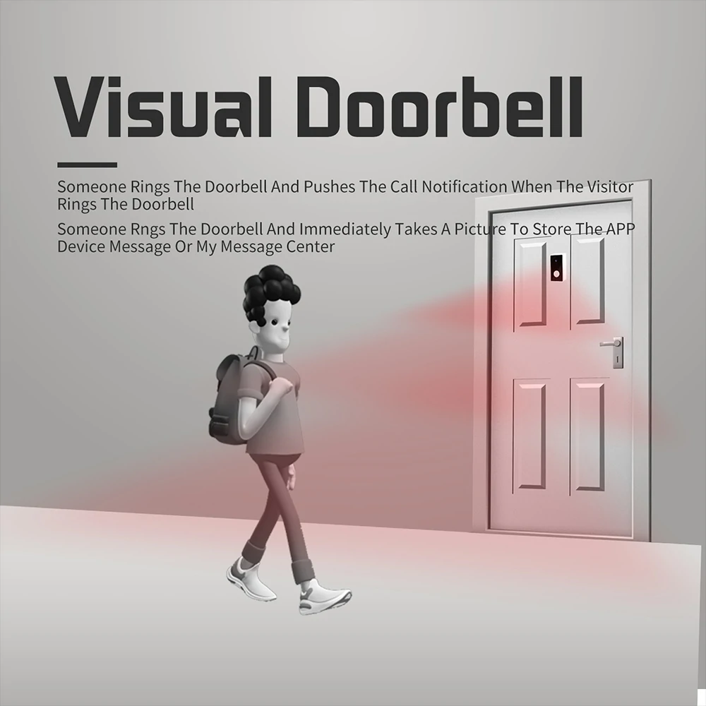3.Visual Doorbell Someone Rings the Doorbell and Push Call Notification When Visitor Rings the Doorbell Someone Rngs the Doorbell and Immediately Take a Pictu re to the Store, App Device message or my message center.